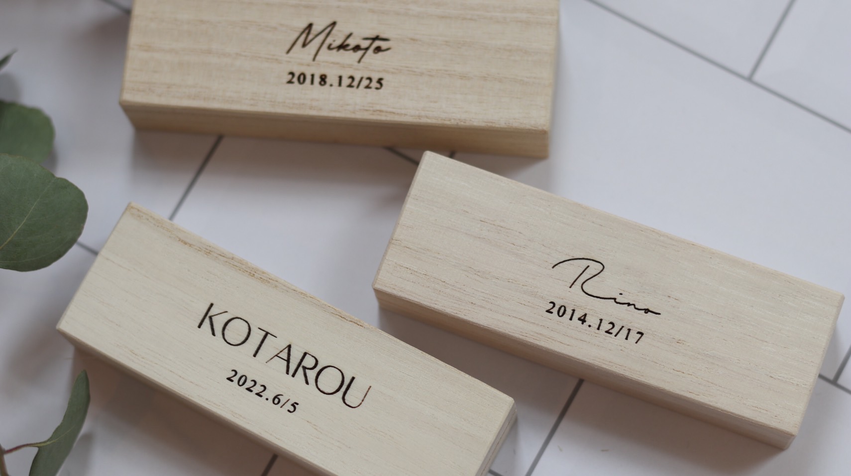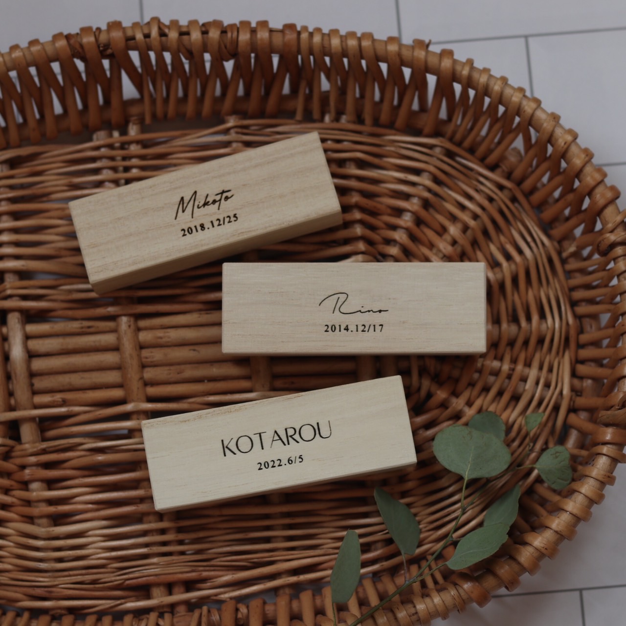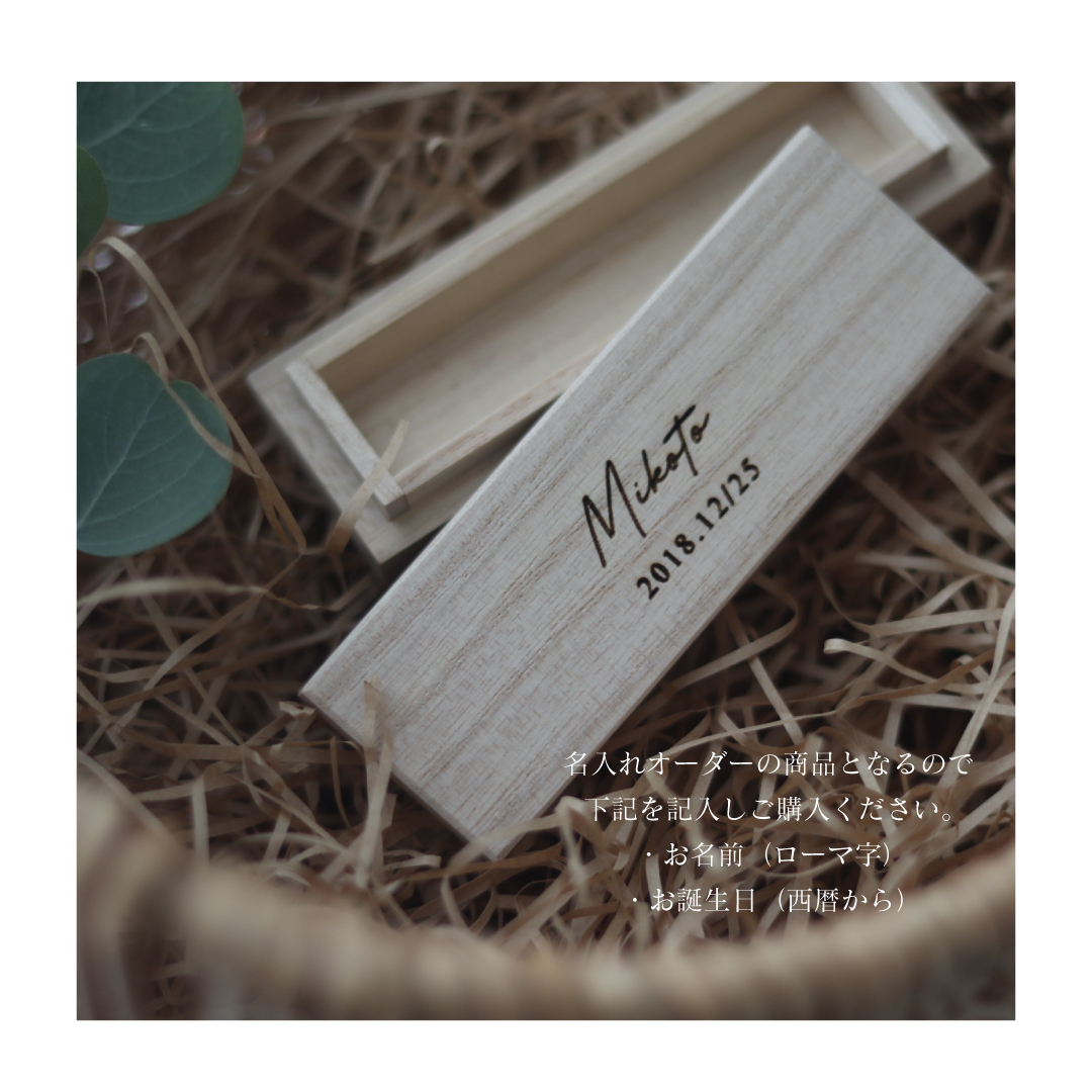 名前とお誕生日を刻印しますので思い出の品などにご使用いただけます。