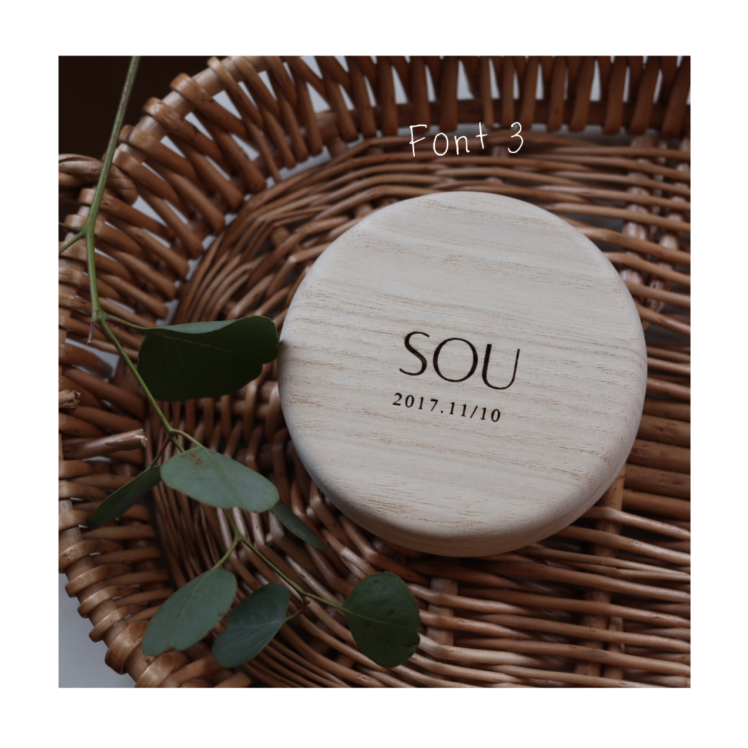 オーダーメイドになるので、お名前(ローマ字)と誕生日(例:2018年10月7日)(※西暦から入力してください。刻印は2018.10/7の表記で刻印されます。)を入力してご購入ください。