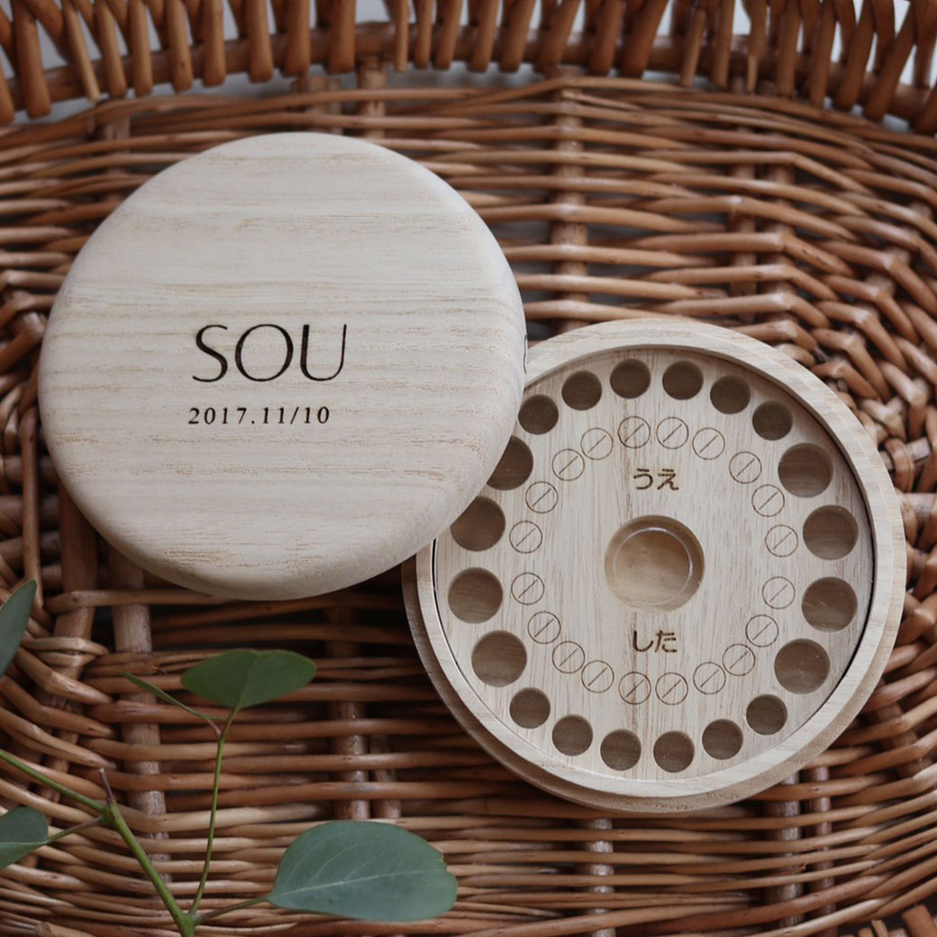 お名前とお誕生日をオーダーメイドで刻印したオリジナルの乳歯ケースで思い出を大切に保管しましょう。
