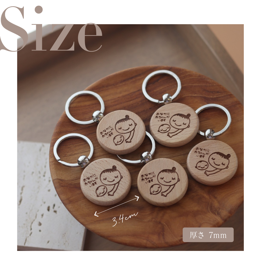 【おなかに赤ちゃんがいます】の文字とイラストを刻印したマタニティキーホルダー