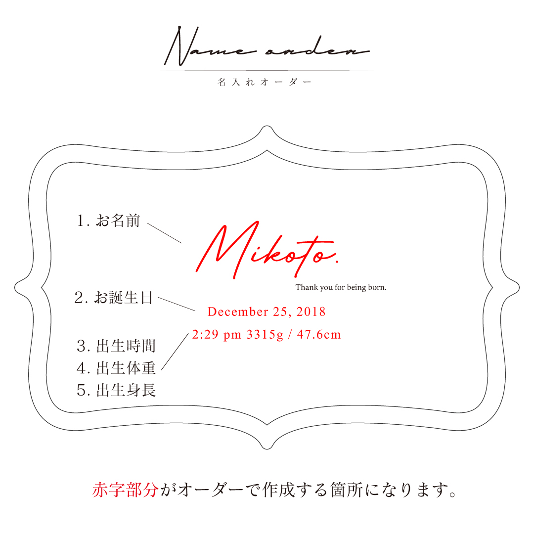 名入れオーダーとなりますので、購入時は以下をテキストフィールドに入力しご購入ください。